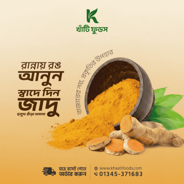 হলুদ শুধু রান্নার স্বাদ ও রং বাড়ায় না, এটি প্রাকৃতিক অ্যান্টিসেপটিক ও স্বাস্থ্যকর উপাদান হিসেবেও পরিচিত। মাছ, মাংস, ডাল, তরকারি ও ভাজিতে ব্যবহার করলে খাবার হবে আরও সুস্বাদু ও আকর্ষণীয়।